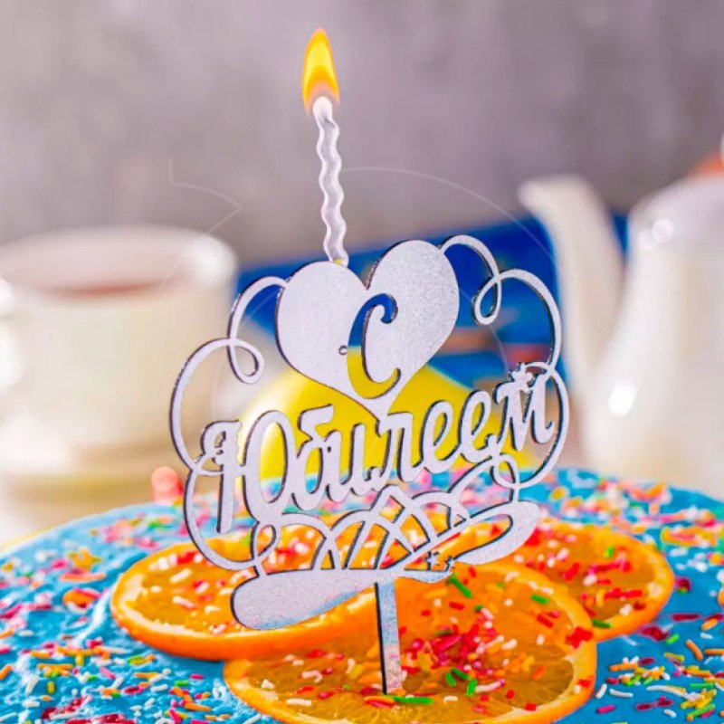 Доставка Свеча-топпер декоративная акриловая "С Юбилеем" Серебро из магазина в вашем городе: