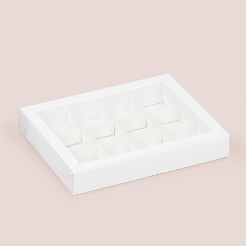 Доставка Коробка на 12 конфет с прозрачной крышкой белая 16х20х3 см из магазина в вашем городе: