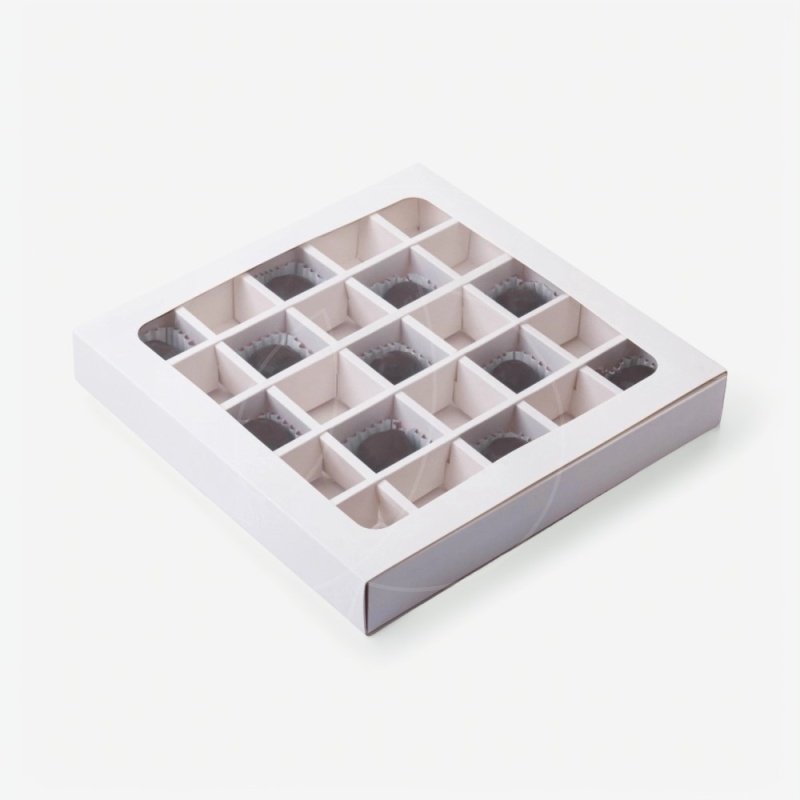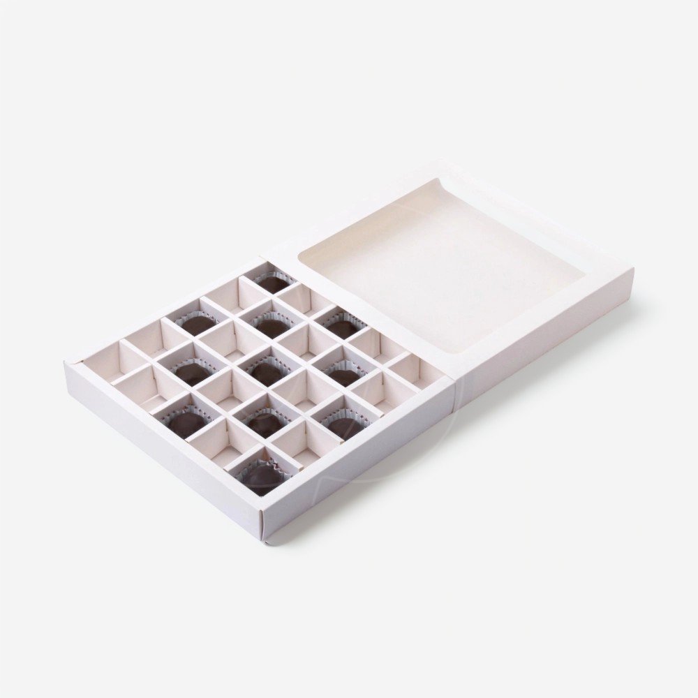 Доставка Коробка на 25 конфет с окном белая 22х22х3,5 см из магазина в вашем городе: