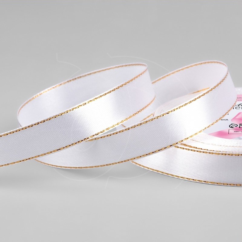 Доставка Лента для декора и упаковки Атласная Белая с золотом 15 мм из магазина в вашем городе: